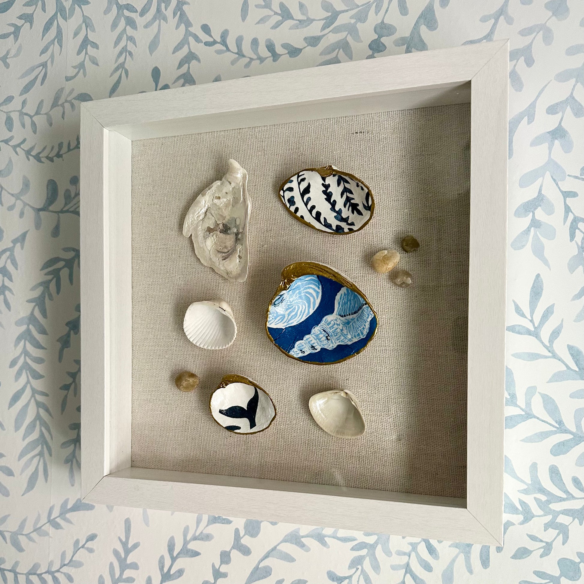 Shadowbox Framed Shell Art - 10x10 Wood Frame: Nautical Treasures